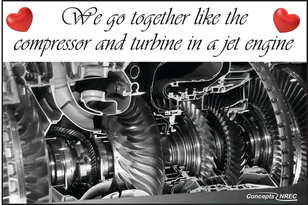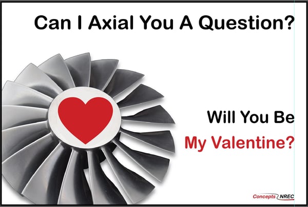 Valentine’s Day is February 14, and while some cynics refer to it as a “Hallmark holiday”, most people commemorate the day in some way. One of the biggest challenges is finding a card that perfectly captures the way you feel about someone, while also reflecting who you are. Well, Concepts NREC has created some turbomachinery-themed Valentine’s Day cards for engineers. These fall into the Art end of our Art-to-Part Solution.