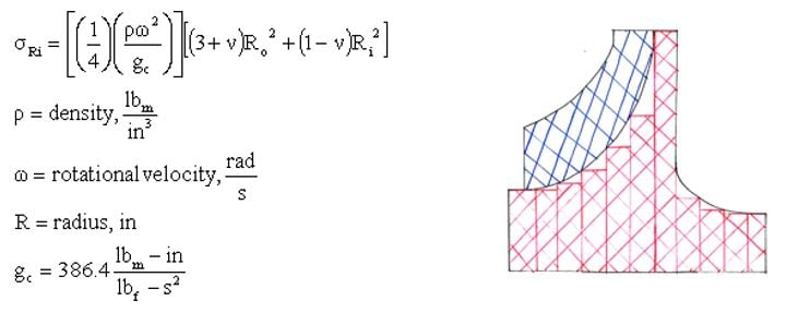 If we consider a boreless wheel, where Ri=0, we can calculate the tip speed at which the stress meets the strength of the material. Below is a very helpful type of chart for those of us two strokes short of running an analysis program.