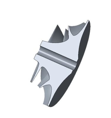 But do they always matter, and how much? For example, recently, we were looking at an impeller design that is pushing the limits. We needed to reduce the stress. The first thought was to reduce the mass, so just undercut the disk and trim away all the blue color parts in the stress plots and we are done. But it was not enough. So, then we look at using a lighter material, like aluminum, because it has about 1/3 the weight of steel. But wait, aluminum has a modulus of elasticity (E) of about 1/3 that of steel. Does the reduced modulus impact the stress? You would think, as a highly experienced engineer, I would know the answer off the top of my head. But honestly, I had to go back to the books to look it up. One would think that stiffer is better and stronger, right? After all, alloy steel is 3 times stiffer than aluminum, and stronger too. But, as every college professor reminds their students, “don’t forget the basics”. It turns out, stiffness doesn’t affect the stress of the impeller. Impeller stress is a function of speed and material weight. The stiffness only affects the deflection. The equations for stress of a rotating disk are below. See, there is no E anywhere. Using this simple equation, the impeller can be modeled as a group of disks, as seen below.