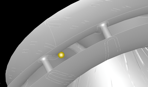 If you can see the whole tool ball from both ends, then standard tooling should work for the part. However, even if part of the ball is obscured you can still use “lollipop” tooling that has reduced shaft diameter. As long as you can still see the center of the sphere, this means you can theoretically reach this point from each side. The distance between the center of the tool and the adjacent wall will determine your maximum neck/shank radius. You would want to repeat this process for any areas of concern and while this can vary from part to part, checking at the fillets is a good starting point. It is also important to allow for a small amount of overlap between the leading-edge passes and the trailing edge passes. This allows to add a blend/ramp which will prevent a step or mismatch between the two toolpaths.