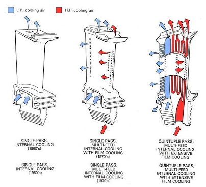 Figure 4. Multiple scheme of film cooling in gas turbine. (http://aeromodelbasic.blogspot.com/2012/01/bearing-chamber-cooling-development-of.html)