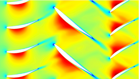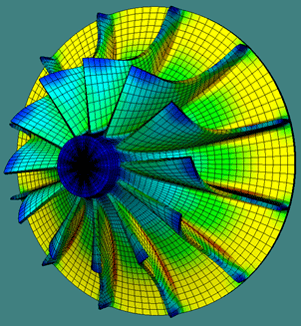 Figure 4 shows an image depicting Computational Fluid Dynamics (CFD). CFD visualizes how a gas or liquid flows, as well as how that flow affects objects it flows past. A simple example that many might be familiar with is those cool images of cars in wind tunnels, with the vapor streaming over the chassis of a car. Well, in turbomachinery, software such as FINE™/Turbo, from our Partner, NUMECA International, shows how fluids flow during the transfer of energy between the rotor and a fluid. It also creates images that, I think, rival that of any artist.