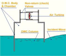 One of the lesser explored energy sources is the ocean itself. Oscillating water-air column (OWC) technology uses wave energy to push and pull air through an air turbine to generate electric power. It is one of the most technically viable options for converting wave energy into electric power. Other options include Ocean Thermal Energy Conversion (OTEC), which uses the temperature difference between water at the surface and lower down to generate power, and tidal turbines that are submerged and pull energy from the ebb and flow of the tide.