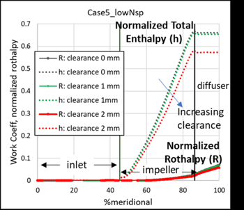 Conservation of rothalpy in the rotating components of turbomachinery is a fundamental assumption in low-order models, including meanline analysis. Commonly used equations of rothalpy depart from the actual values when a given surface in the rotational domain is not actually rotating, as is the case with an open impeller or in a leakage path. In this webinar, we will look at the common equations for averaged rothalpy, determine under what circumstances they do not strictly apply, examine different correction methods, and consider a new formulation of leakage path modeling. The new formulation uses these corrected rothalpy terms, which provide a higher level of fidelity to loss generation and pressure distributions calculated from meanline models. This new formulation can provide improved prediction, particularly for axial thrust magnitudes, that have typically been difficult to calculate accurately.