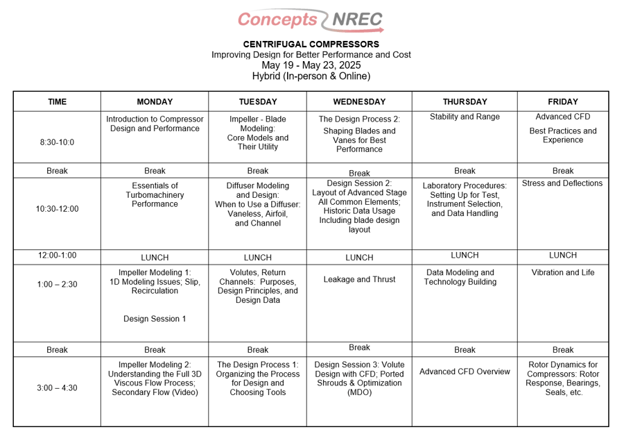 The course materials have been developed over many years and are regularly reviewed to ensure that they are kept up to date. Course fee includes the textbook, Centrifugal Compressor Design and Performance, written by Dr. David Japikse. If you already have the book, let us know at registration and we will subtract the cost from your fee.