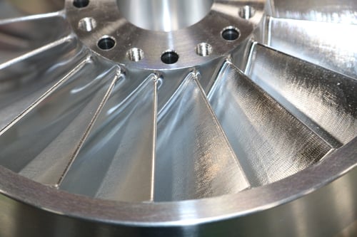 A shrouded (enclosed) impeller, machined from a single piece of stock