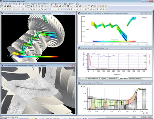 Cadence CFD is a full-featured Flow Integrated Environment for rotating and non-rotating flow analysis in external and internal turbomachinery applications. It is the fastest CFD suite available for rotating machinery with incompressible and compressible fluids, operating from subsonic to hypersonic flow regimes. All types of multi-stage axial, radial or mixed-flow configurations are supported: compressors, turbines, pumps, fans, propellers or contra-rotating propellers. Cadence CFD seamlessly launches with one click from AxCent.