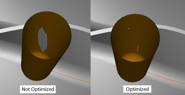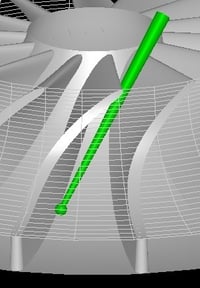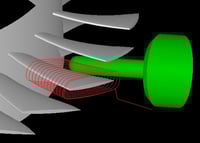 Compared to other CAM systems, MAX-5 is often capable of generating flank milling toolpaths with an 80% to 90% error reduction with one pass on each side of the blade. The alternative, point milling with just the tool tip, requires many passes to leave a suitably small cusp height between passes. This dramatically increases the machining time of the part. The flank milling algorithm in MAX-5 also provides smooth machine motion without dangerous rotary spins that are a common pitfall of 5-axis machining.