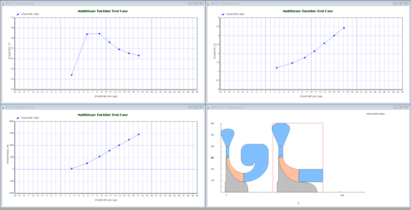 RITAL has built-in models for inlet volutes, rotor and nozzle diffusion/losses, disk friction, and other losses related to subsonic turbine performance. The same consistent model is used in both the design and analysis modes of RITAL.
