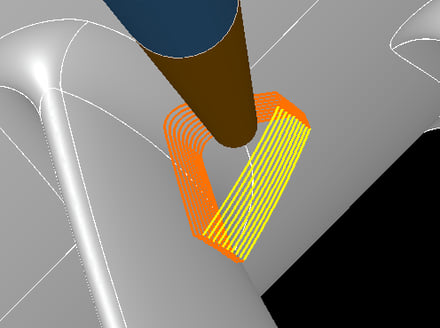 A new blending option has been added to MAX-SI Box perimeter toolpaths that allows for blending in/out along passes when moving across the pocket. This pairs nicely with the new partial box passes for blending between toolpaths such as for fillet reduction strategies.